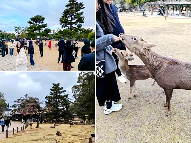 奈良公園,一座有著深厚文化底蘊和歷史的打卡點,這片寧靜的綠洲中,棲息著數以千計自由漫步的鹿群,鹿被尊為神明的使者,在古代,被視為神圣的存在。大家與鹿群近距離接觸,一路被小鹿追逐、圍繞,一起嬉戲、互動,仿佛一切煩惱都在此刻煙消云散。
