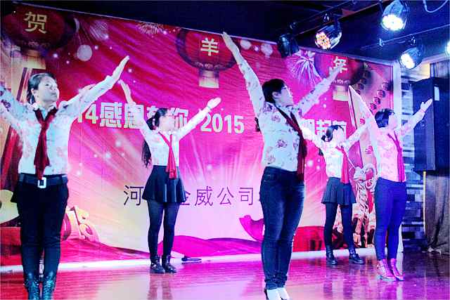 金威廊坊部員工帶來(lái)的開(kāi)場(chǎng)舞——《小蘋(píng)果》為年會(huì)表演打開(kāi)了一個(gè)很好的開(kāi)端。