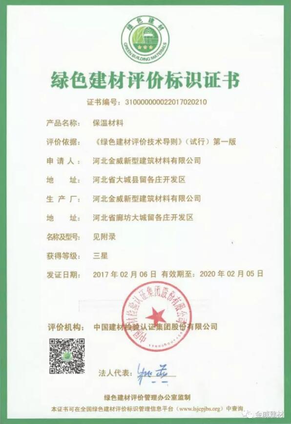 近期,中國金威通過了綠色建材三星標識認證。此舉標志著中國金威在環保方面的工作取得了國家的認可,在保溫材料行業獨樹一幟。