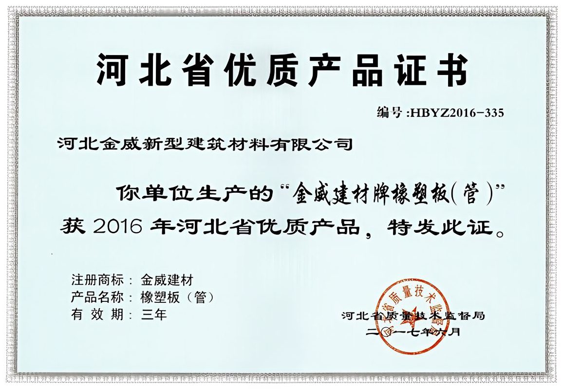 近日,金威建材橡塑保溫產品榮獲河北省質量技術監督局頒發的“河北省優質產品證書”,這標志著金威產品走在了國內保溫建材的領先行列!