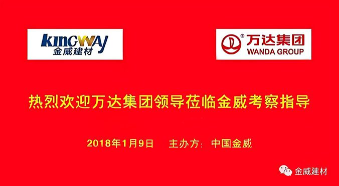 2018年1月9日下午13時,萬達集團領導一行五人蒞臨金威考察指導。金威總經理、運營總監、大客戶部經理等高層領導人熱情接待。