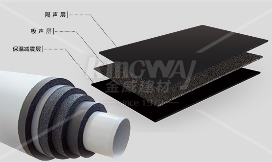金威保溫隔聲系統是針對高噪聲管道設計的隔聲降噪及絕熱二合一的專業系統,由金威橡塑、靜唯吸音板、靜唯隔聲墊和專用外呼層材料多層復合的三明治結構,可針對不同降噪要求進行結構選型設計。