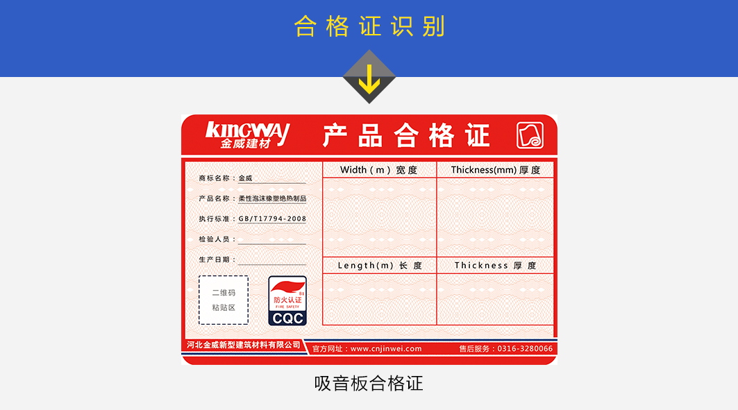 一、"金威"牌吸音降噪系列產品每件包裝上都貼有本公司統一打印的合格證,發貨時并打印銷售人員二維碼,發貨日期與檢驗人員編號。