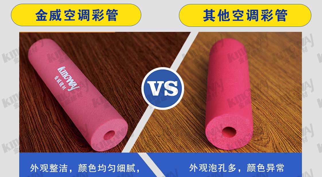 金威空調彩管優選材質,具有良好的柔韌性,便于安裝操作,適用于空調的冷媒介質系統中的銅管保溫領域。