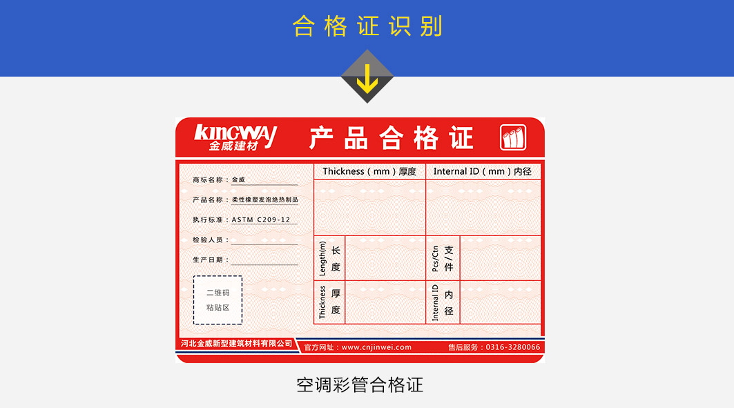 金威空調彩管具有更高的阻濕因子,構成真正'"內置"隔汽層,使整體既是保溫層又是防潮層,即使表面出現局部破損依舊有效阻止外界引起的滲透。